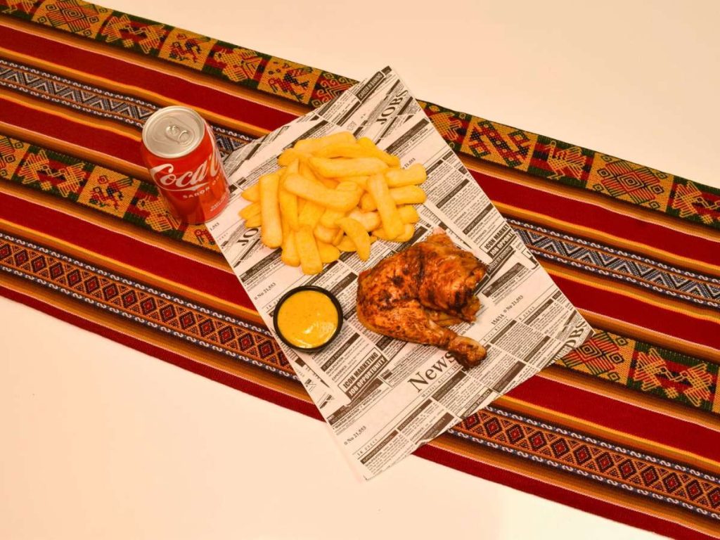 Combo saludable Inka Take: pollo peruano, papas y postre cuchareable