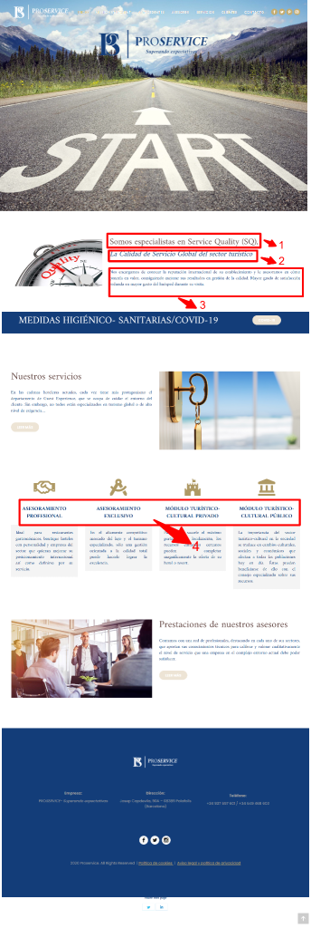 A continuación, se determinan las áreas a intervenir por secciones enumeradas. Ten en cuenta que las instrucciones están después de la imagen, así como los textos sugeridos para tu sitio Web.