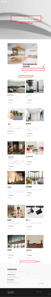 A continuación, se determinan las áreas a intervenir por secciones enumeradas. Ten en cuenta que las instrucciones están después de la imagen, así como los textos sugeridos para tu sitio Web.