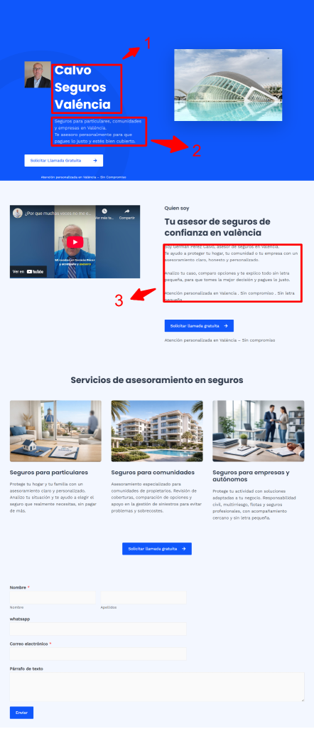 Estas son acciones de SEO on-page, es decir, ajustes que se realizan directamente en el contenido y estructura de la página web, a continuación los textos propuestos para el sitio web y las ubicaciones por sección. (títulos, párrafos, llamados a la acción)