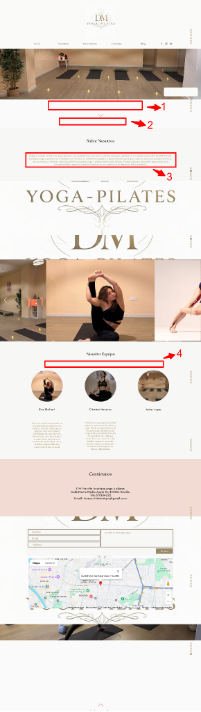 A continuación, se determinan las áreas a intervenir por secciones enumeradas. Ten en cuenta que las instrucciones están después de la imagen, así como los textos sugeridos para tu sitio Web.