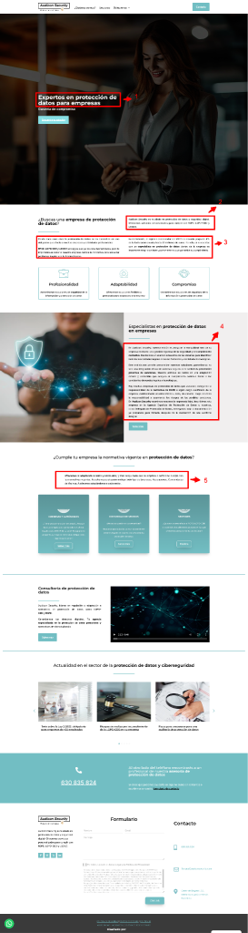 A continuación, se determinan las áreas a intervenir por secciones enumeradas. Ten en cuenta que las instrucciones están después de la imagen, así como los textos sugeridos para tu sitio Web.