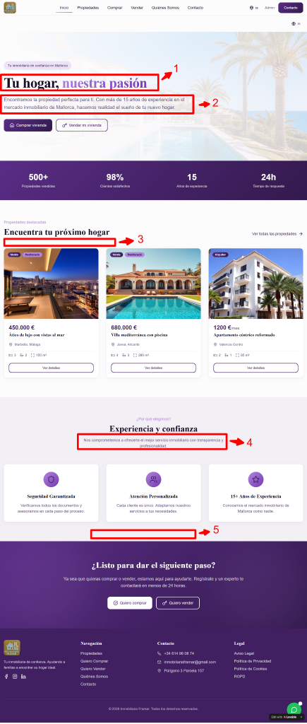 Estas son acciones de SEO on-page, es decir, ajustes que se realizan directamente en el contenido y estructura de la página web, a continuación los textos propuestos para el sitio web y las ubicaciones por sección. (títulos, párrafos, llamados a la acción)