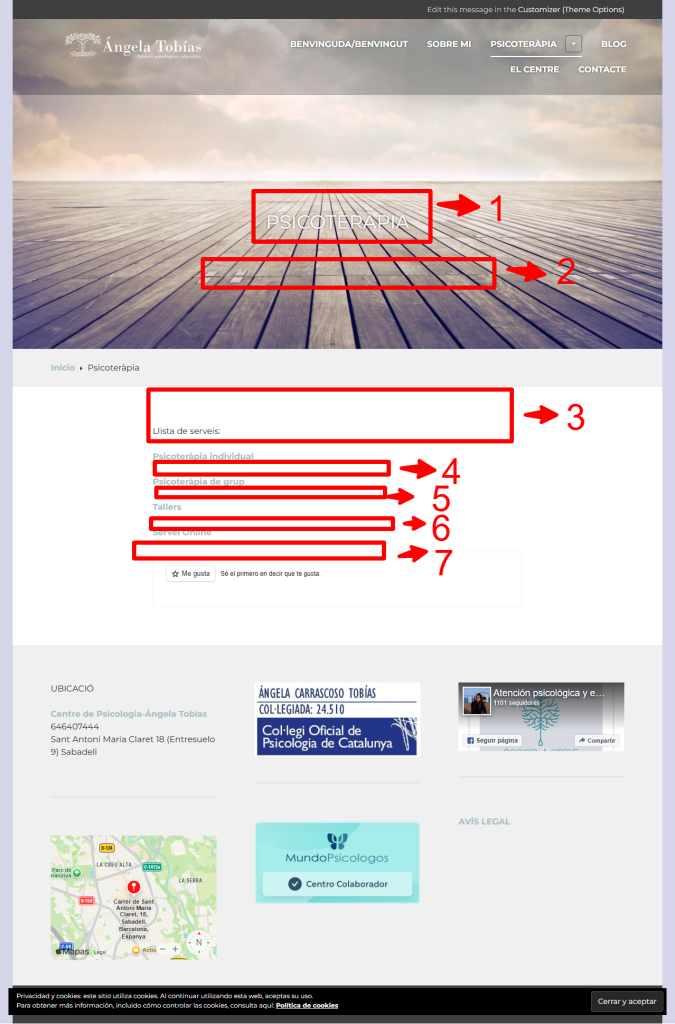 Recuadros rojos numerados en la imagen: indican las secciones que vamos a intervenir.