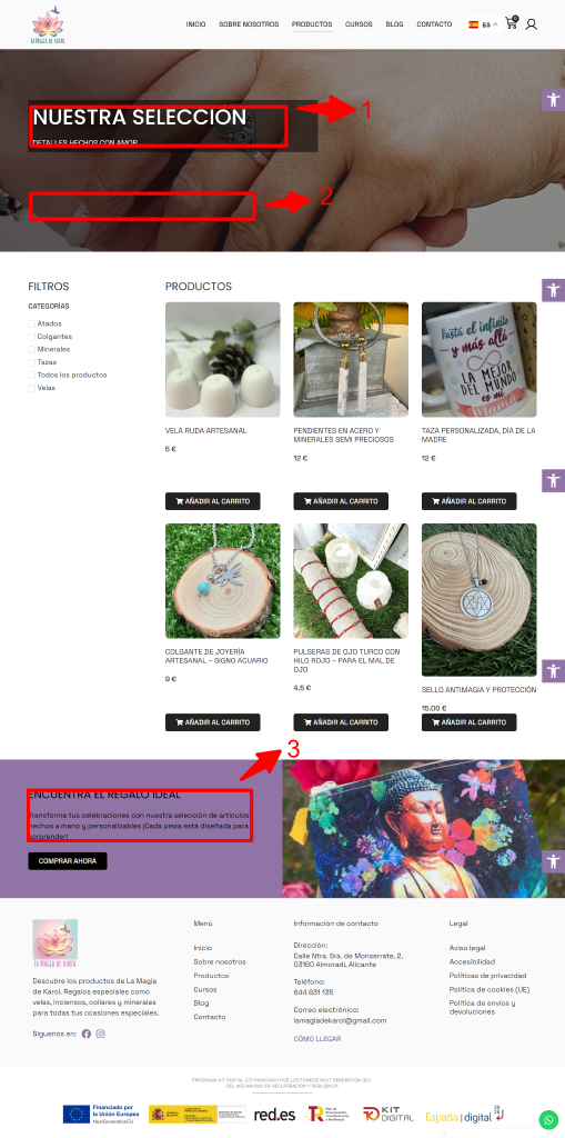 - Recuadros rojos numerados en la imagen: indican las secciones que vamos a intervenir.