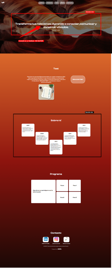 Texto en negro: es el copy final que irá en la sección correspondiente, este es el contenido que debes verificar y aprobar para implementar en tu sitio web.